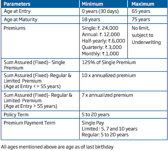 With a single, limited and regular premium pay option the maximum policy term available is of 20 years. You keep on paying the premiums and at maturity you will get the fund value accumulated or at death your nominees will get highest of the following: