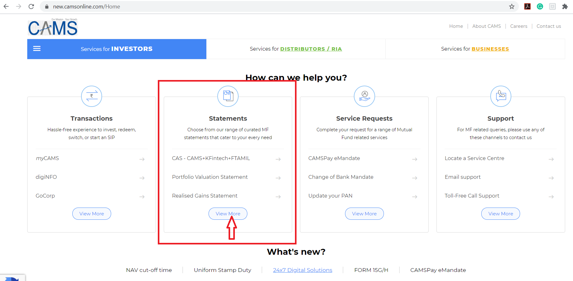 Step 1.  Visit www.camsonline.com and click on link in the CAS box