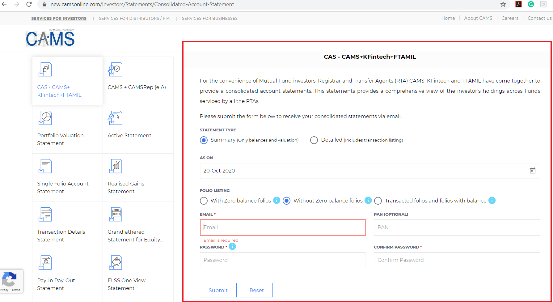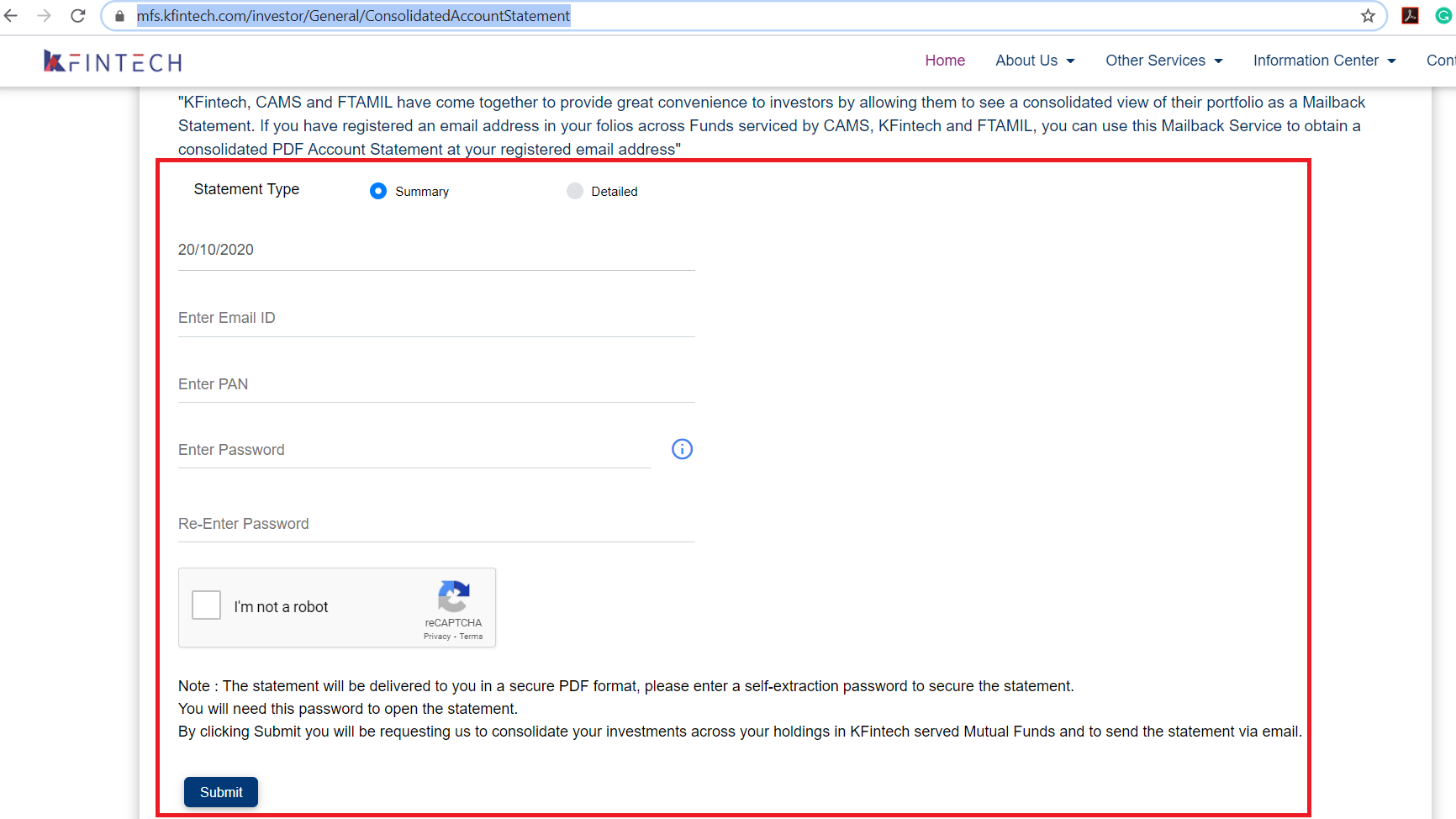 Mutual funds consolidated account statement online